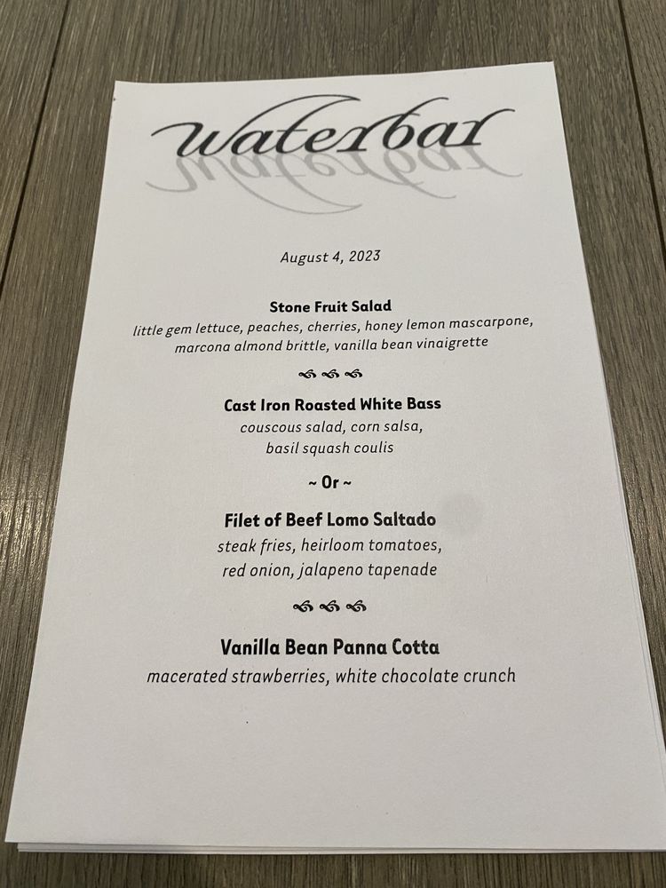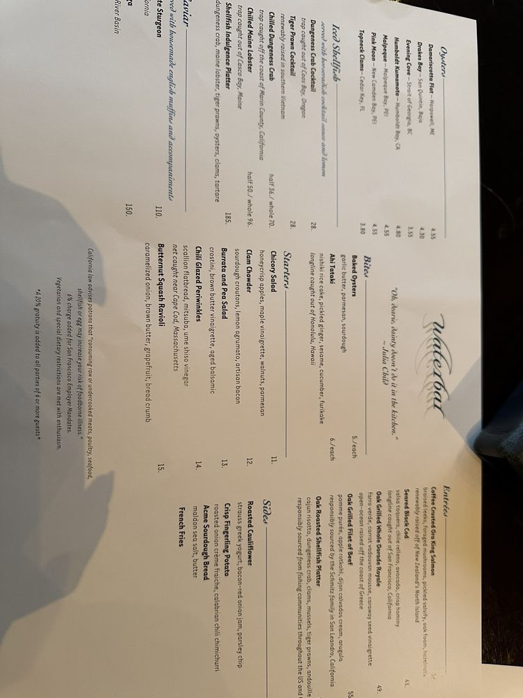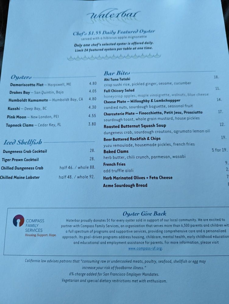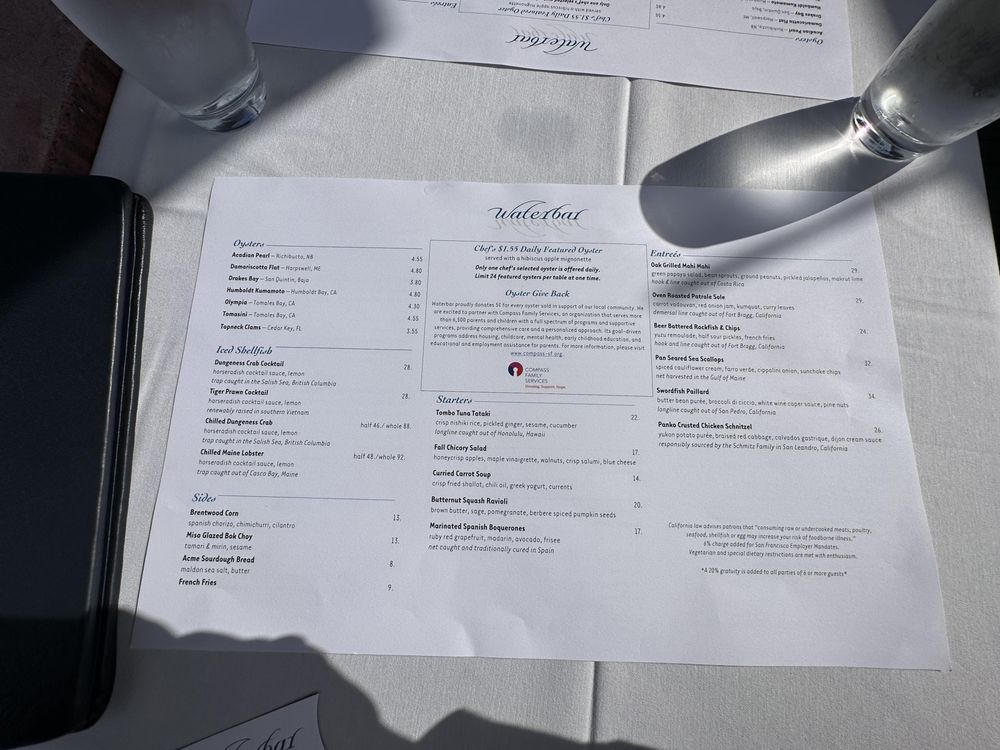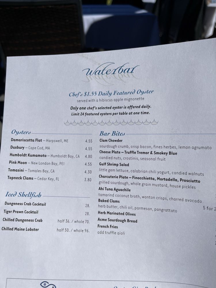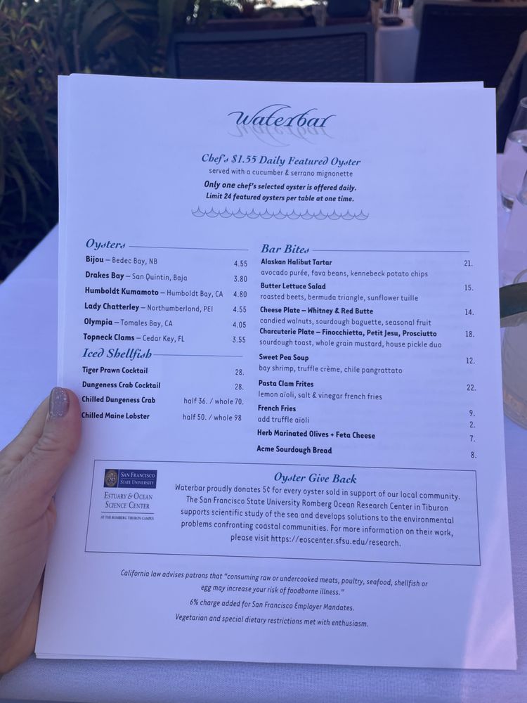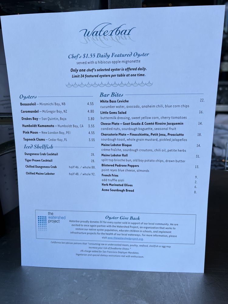 All menus are subject to changes daily, refer to waterbarsf.com